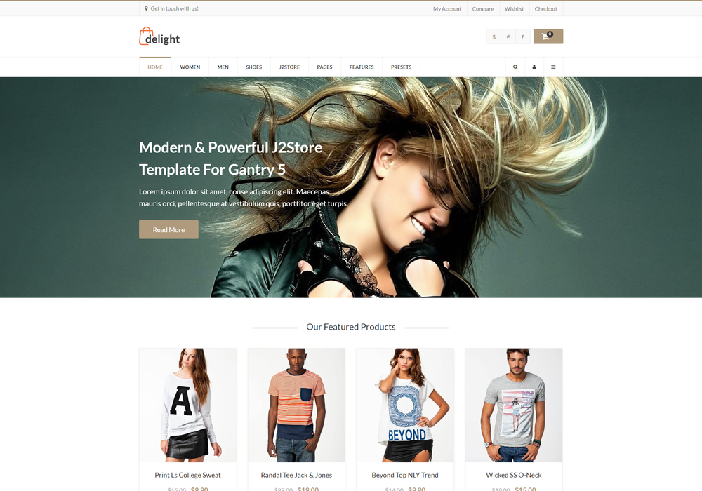 So what we did in Delight was to re-style the whole J2Store extension! We decided to apply a modern, clean and universal design so you can use the template for all kind of products. Yes, the demo is built for a fashion/clothes store but you can very well use it for whatever you want... including digital products!